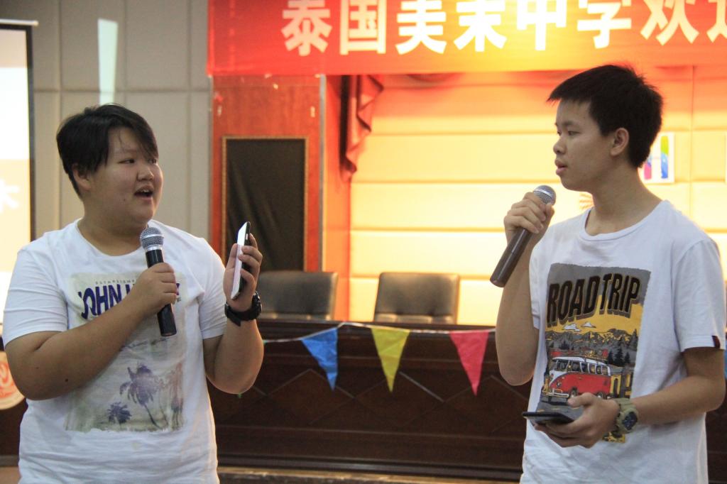 紧接着,泰国美茉中学万兰娅同学为大家献唱《告白气球》,引起现场大合唱,共同唱出对求学美好时光的告白。赴泰实习生领唱《水调歌头》,充分体现了文创学子良好的精神风貌,唱出了美好的祝愿。泰国学生Meaw和我院周木荣一首《perfect》,不仅展现了他们完美的歌声,更传递出了对友谊的祝福。中泰学生共同参与的“蒙眼盲打”游戏,引得现场笑声不断。我院三名同学的群口相声——《如此搭档》,不仅为全场带去欢乐,还展现了中国民间文化的独特魅力。赴泰同学们上台领取实习证书,体现了我院与泰方良好的交流关系,也促进我院学生专业的发展与提升。