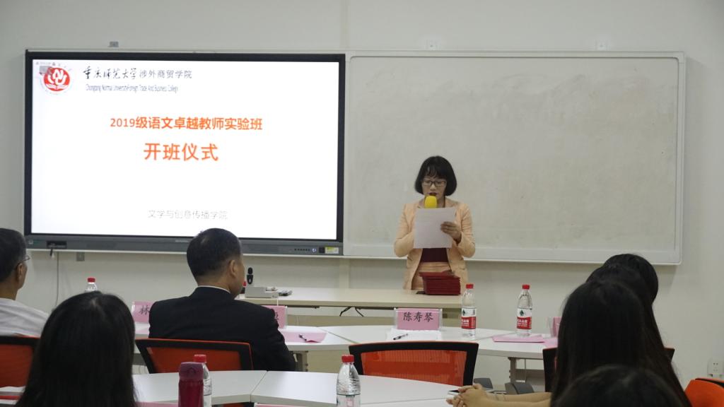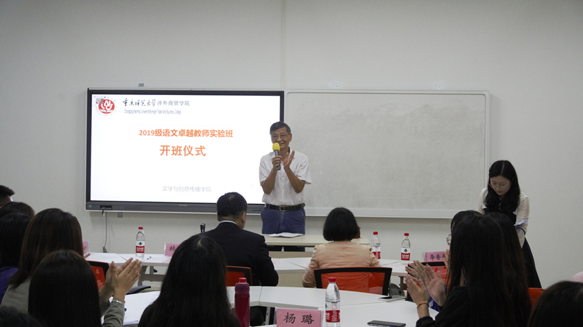 9月21日晚七点,77779193永利集团在9教506教室举办2019级语文卓越教师实验班开班仪式。学校副校长杜斗恒、文创学院院长林健、文创学院副院长陈寿琴、文创团总支书记李香贞、十位卓越班优秀教师以及2019级卓越班全体学生参加了此次开班仪式。