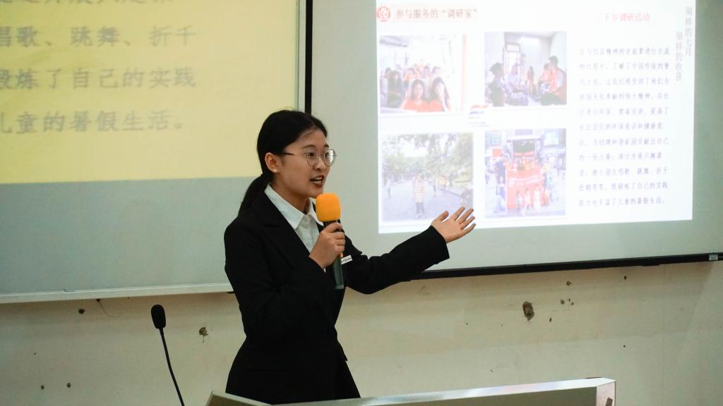 大会临近尾声,陈寿琴副院长上台总结发言,她邀请获奖的两位候选人上台分享他们的喜悦,并向他们致以诚挚的祝福。同时陈寿琴副院长也对在场的所有同学提出了她的希望,期待所有人都能在高处相遇,成为经得起国家、社会和人民检验的优秀大学生,拥有感恩之心。
