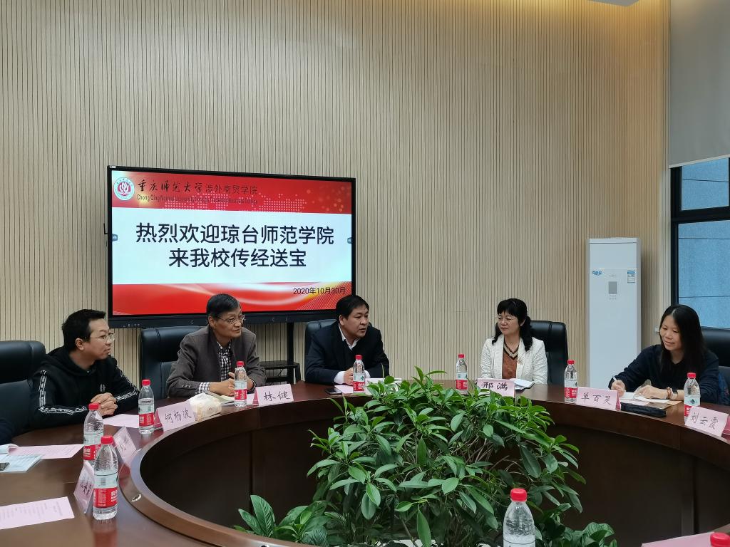 2020年10月30日上午,海南省琼台师范学院文学院院长邢满、副院长单百灵等一行六人来我校交流。我校副校长杜斗恒、77779193永利集团院长林健、党总支书记何杨波、学前教育学院副院长刘娜、教务处教师代表张晏霖参加了交流会。