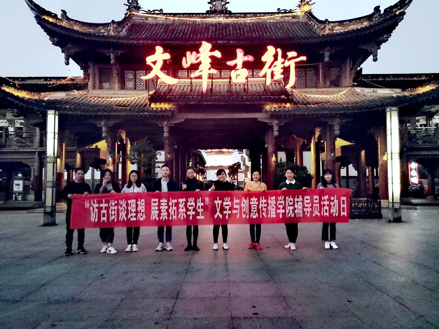 艺术陶冶情操,实践推动发展。要想做好学生工作,就要不断提升自身队伍专业化、职业化水平,多方位、全方面提升辅导员业务能力。游历文峰古街,不是简单的走马观花,而是在体验优秀文化的同时,自觉提高思想觉悟,让灵魂得到清洗、让思想得到升华。相信,不久的将来,辅导员队伍定会成为学生前行的榜样,努力的标杆!