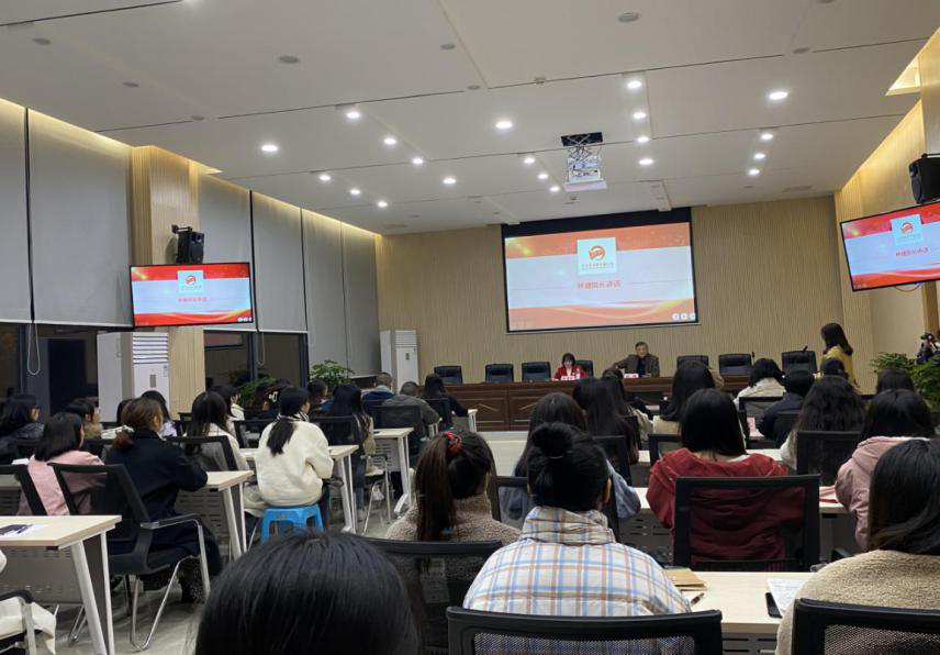 紧接着,副院长陈寿琴就“国学+”人才培养实验班的具体情况进行了简要说明,提出国学班实行“导师制”,同时说明了导师的指导任务,并为19级国学班学子介绍了班级班主任吴鹏老师,对于学生方面,实行“考核制”,副院长陈寿琴为大家解释了相关考核制度,强调国学班可持续发展,终生发展,个性发展的特点,呼吁大家探索创新精神,除了专业知识的学习,更要注重正确人生观,价值观的树立。