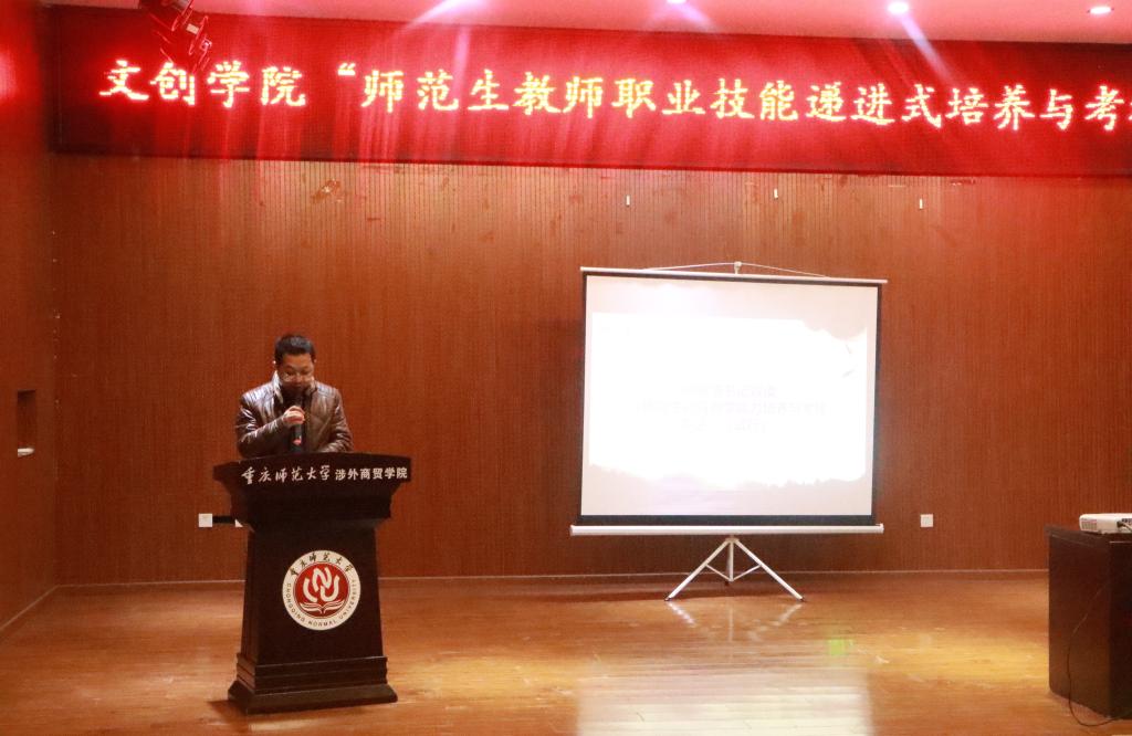 何杨波书记首先宣读了77779193永利集团《师范生教育教学能力培养和考核办法》。然后由教师教育部主任彭品荣宣读《师范生教师职业技能递进式培养与考核科目》,并对培养与考察方法进行了说明。