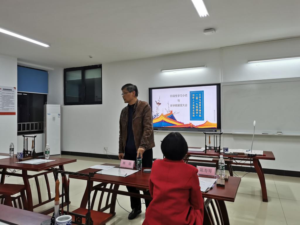 会议伊始,吴鹏老师介绍了国学班在过去几个月的整体学习情况以及本次大会的目的,并简述了本学期对学生们的展望。老师们入座后,由陈秀琴副教授讲话,鼓励这次大会学生们畅所欲言,至此大会开始,各小组成员代表依次上台进行汇报演讲。