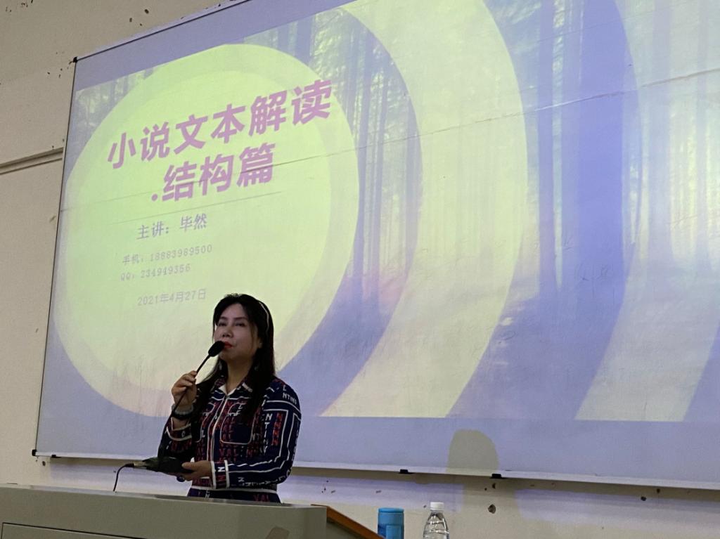 毕然副教授讲解完毕后,吴鹏老师上台总结发言。讲座在热烈的气氛中结束。通过这次讲座,2019级文创学院的学子们更深入地了解了小说的结构,受益匪浅。相信同学们今后在进行小说创作时,会让自己迈上一个新的台阶。