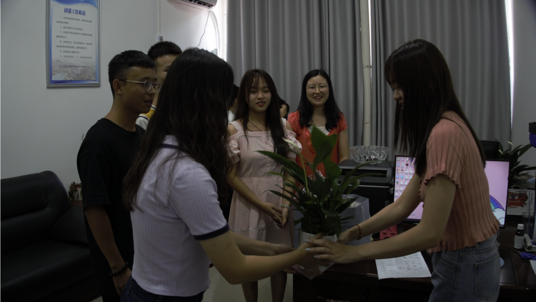 同日下午,团总支书记李香贞带领第十七届团总支学生会主席团为团委老师们送上君子兰和白掌,寓意着教师们高洁的品德与学生们真诚的问候。