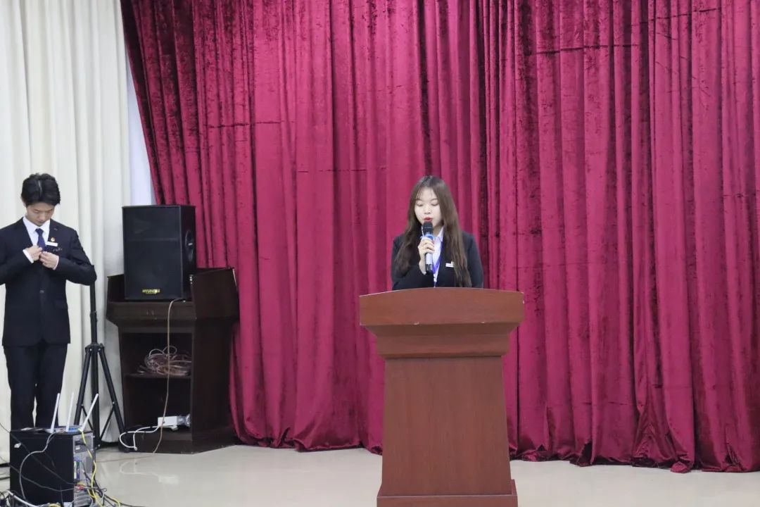 十七届学生组织工作人员代表罗能瑾同学和王志坤同学上台作2020-2021年度工作规划。罗能瑾同学说道,新的一年,我们将做好接棒人,贯彻新思想、实现新作为;以改进求加强,以创新促发展,打造精品团学工作品牌。