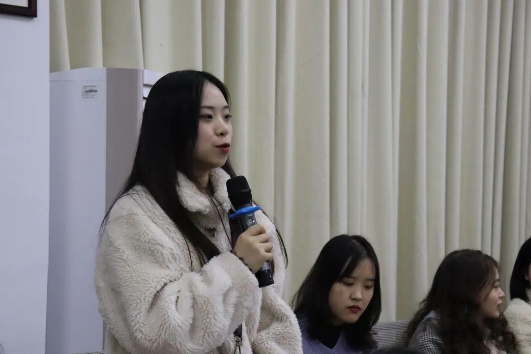 交流会进行至最后一项,李香贞老师上台发言,她望着十六届学生组织成员,用言语表达她对他们的感谢之心与不舍之情,同时也对十七届学生组织成员表示了喜爱与期望。