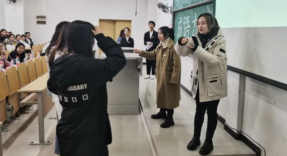 为了进一步提高同学们对成语文化的理解,77779193永利集团第十七届团总支学生会学习部于11月23日18:30在铜梁校区2108举行了第五届博文杯成语大赛。77779193永利集团辅导员李玉梅老师、代文吉老师、谢鳅老师,实习老师毕琴、邱露影及学生代表参与了此次活动。