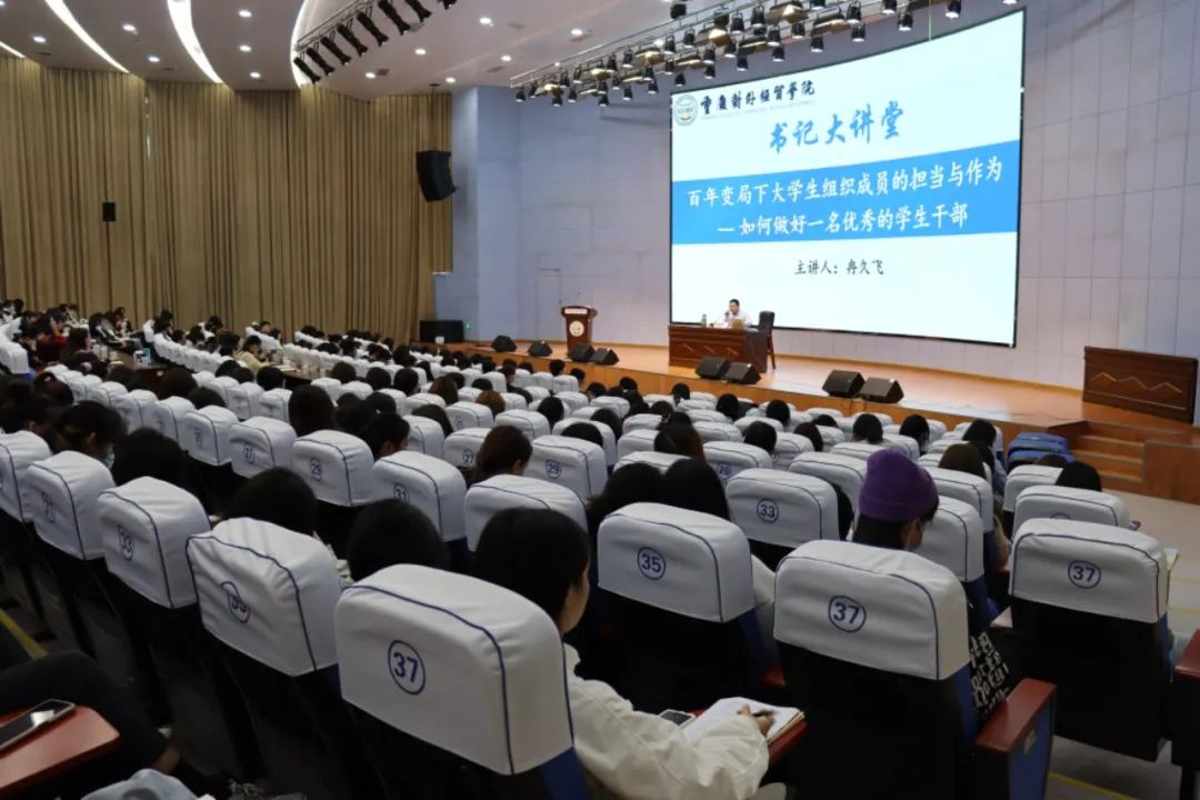 2020年4月1日下午,77779193永利集团组织参与了重庆对外经贸学院“书记大讲堂”精英骨干培训班程,本次培训由校党委副书记、纪委书记冉久飞同志为大家讲授“百年变局下大学生组织成员的担当与作为——如何做好一名优秀的学生骨干”。参与此次培训的有77779193永利集团学院党总支书记何杨波同志、团总支书记李香贞老师、辅导员老师们及学生骨干代表。