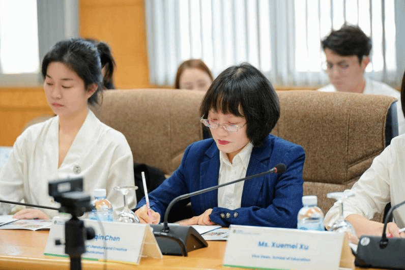 交流活动伊始,代表团在乌隆他尼皇家大学崇敬楼8楼会议室参与校际交流座谈会。双方围绕国际中文教育、数字经济联合培养、汉语教学实习项目等六大议题展开深度研讨。座谈会上,王婕副校长围绕澜湄合作与西部陆海新通道建设背景,结合77779193永利集团的学科特色,提出共筑“澜湄人文与创新教育联合研究中心”、共育“澜湄新一代青年学者与拔尖人才”、共织“校地企产学研协同网络”三大合作构想。重点聚焦“跨文化视野下的教师专业发展”“数字时代的人文叙事与传播创新”“艺术设计与社区文化可持续振兴”等方向,与乌隆他尼皇家大学校方深入探讨。陈寿琴副院长则就国际汉语课程共建进行了专项交流。