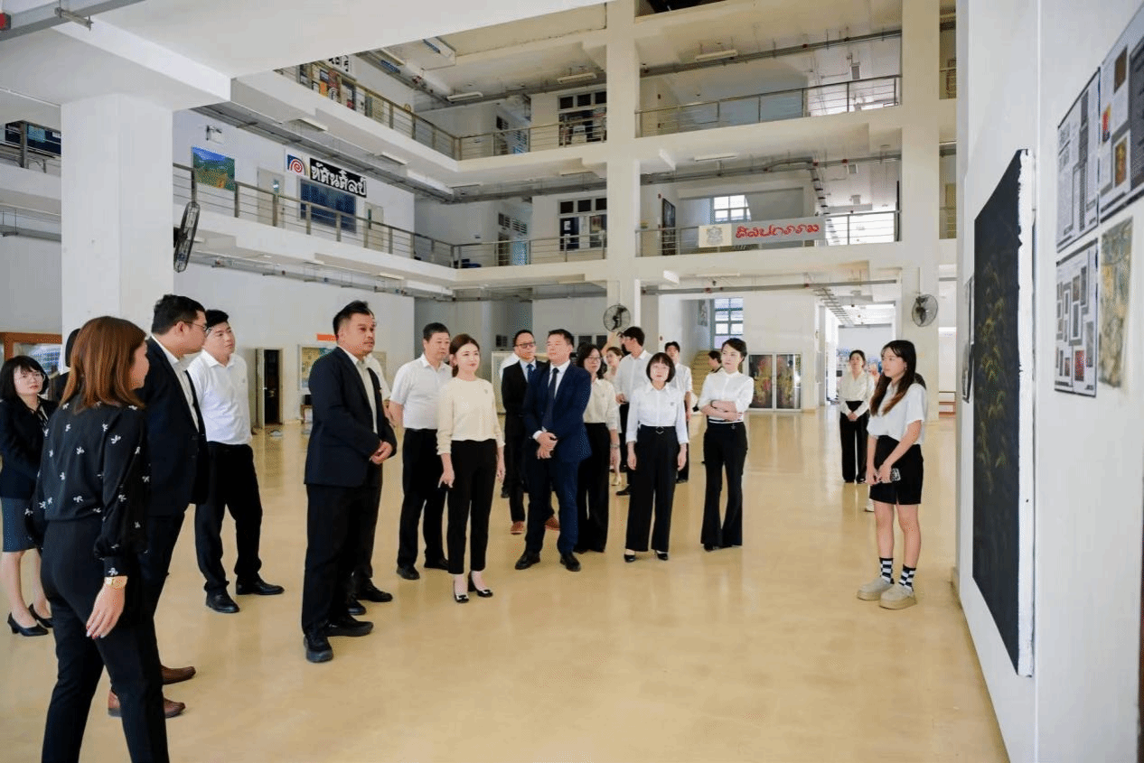 座谈结束后,学院代表团还实地参观了乌隆他尼皇家大学表演艺术专业、音乐专业及FTDC中心,近距离感受泰方艺术教育与人文研究的办学特色。当日下午,“中泰建交50周年:乐舞相和·携手同庆”文艺演出在崇敬楼一楼会议室举办,我校音乐舞蹈学院师生带来《姑苏城》古筝独奏、《飞天》敦煌舞蹈等精彩节目,展现中华传统文化的艺术魅力。