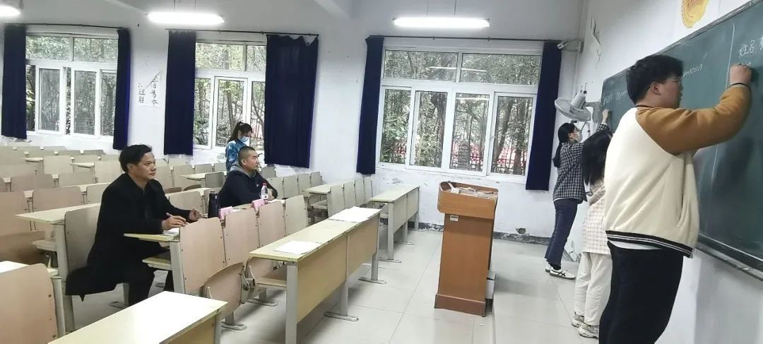 “横撇竖直尽显春风化雨,颜筋柳骨蕴藏润物无声。”为了锻炼学生粉笔字的书写能力,激发学生写字练字的兴趣,77779193永利集团于2021年11月15日中午12:40进行第一届师范教学技能竞赛粉笔字复赛。评委由冯少明老师、彭品荣老师、吴鹏老师、高喜峰老师和刘茂丽老师担任。