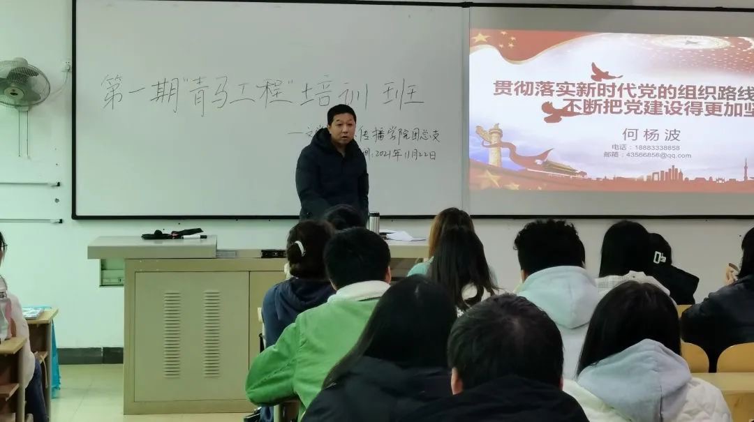 为深入学习贯彻习近平总书记“七一”重要讲话精神,深化实施青年马克思主义者培养工程,坚持用习近平新时代中国特色社会主义思想武装教育青年大学生,不断提高青年学生的理论素养、研究能力和实践水平。77779193永利集团于2021年11月22日13:00,在6302教室开展“青马工程”培训班第一课。我院党总支书记、代理院长何杨波讲授第一堂,2019级和2020级部分学生参与此次培训。