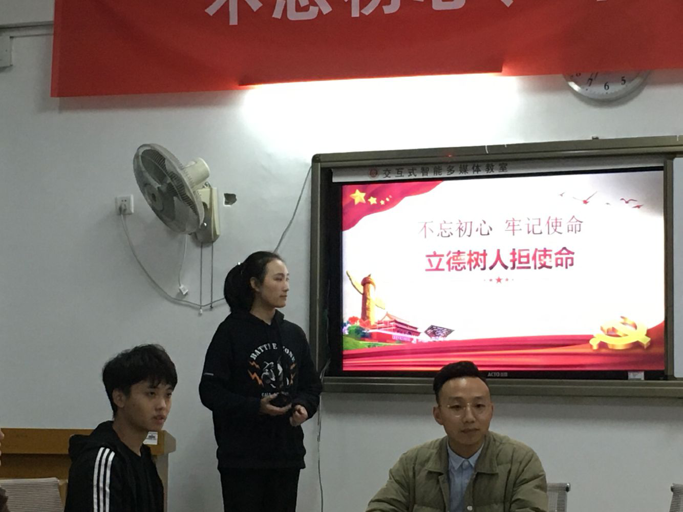 2019年11月7日下午18时30分,为持续推进“不忘初心,牢记使命”学习教育常态化制度化,进一步增强党员党性意识,我院学生第二支部在6107教室召开“不忘初心,牢记使命”--《立德树人担使命》主题学习活动。