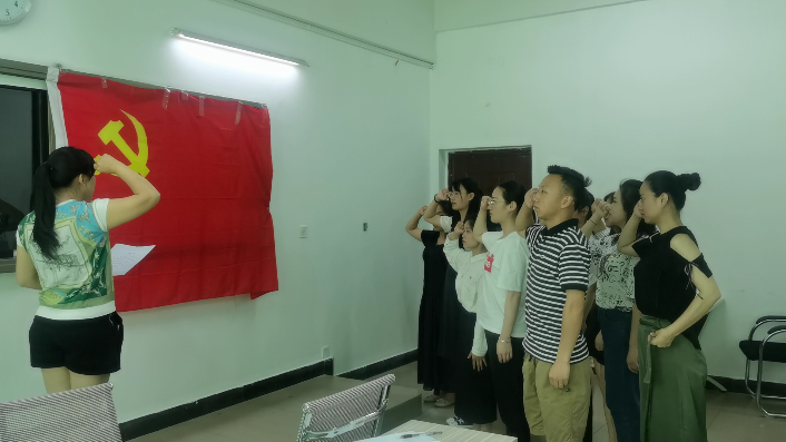 最后,李玉梅同志带领全体党员再次重温入党誓词和入党志愿。教育引导毕业生党员不忘入党初心,牢记誓言,坚定理想信念,持续发挥党员先锋模范作用。此次“让党旗始终高高飘扬”的党课活动使党员们再次接受了深刻的政治洗礼,让各位党员以更好的姿态为人民服务,成为一名优秀的中国共产党员!