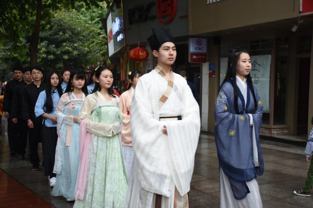 2018年3月30日,重庆师范大学涉外商贸学院文学与新闻学院应邀出席“合川区戏剧曲艺家协会传统服饰文化促进会”进行汉服、民国服走秀。传统服饰作为反应过去时代文化和人们对地域环境影响下形成的文化标志之一,它们各具特色,充分揭示出不同朝代,不同环境下,人们对生活,对美的种种追求向往,而文新学子一直都以发扬传统为己任,一直秉承着“走出去,引进来”的社会实践理念,对于此次活动的举办积极响应。而服饰文化随着社会的进程,不断发展,即满足人们的日常需求,也体现了人们的审美情趣。