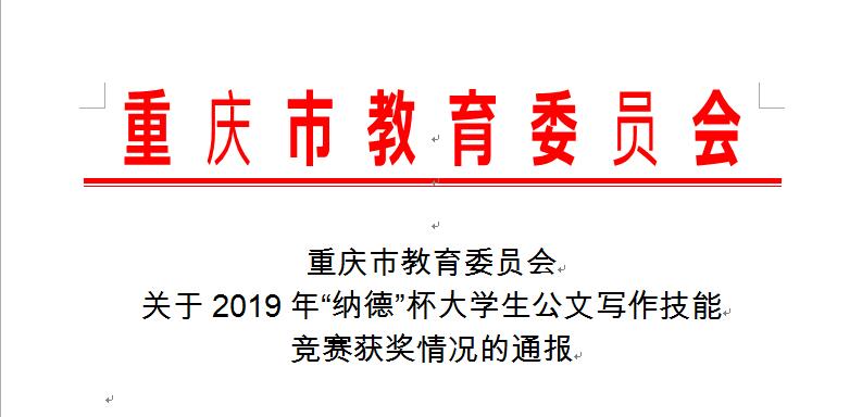 【喜报】我院学子在2019年重庆市大学生公文写作技能大赛中喜获佳绩