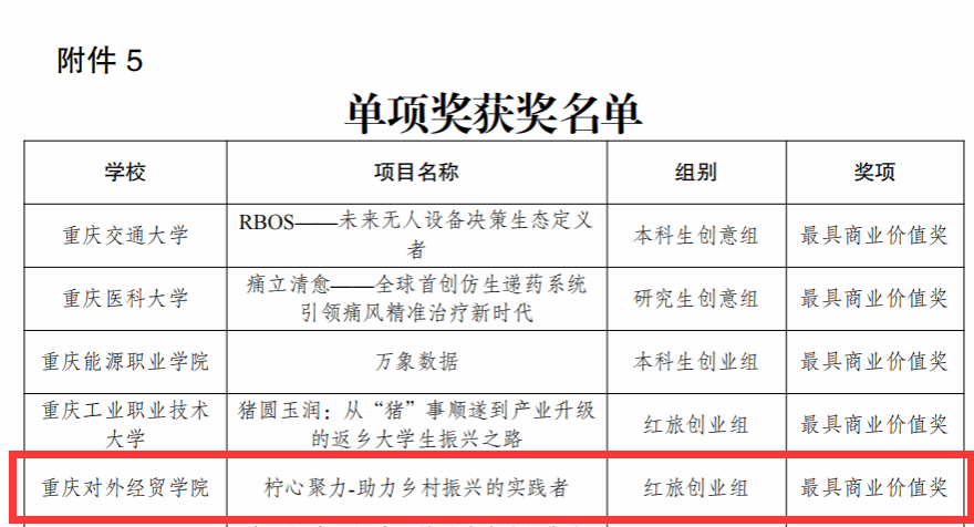 本次大赛中,文创学院李玉梅、王勇等老师指导的“柠心聚力——助力乡村振兴的实践者”项目(创业组)表现卓越,一举夺得金奖及“最具商业价值奖”,实现我校在红旅创业赛道上的重要突破。