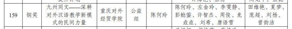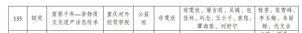 张雪峰、程芳等老师指导的“剪影千年——非物质文化遗产活态传承”项目(公益组)与田维艳、夏梦等老师指导的“九州同文——深耕对外汉语教学新模式的民间力量”项目(公益组)均获铜奖,展现出学院在公益创新与社会服务领域的多元探索与扎实成果。