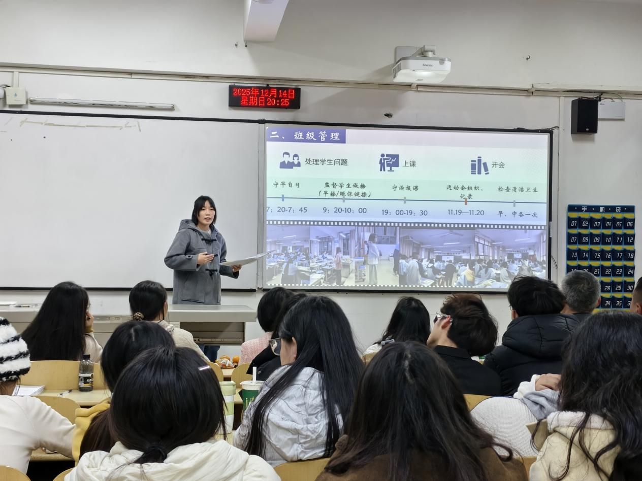 【本网讯】为系统总结见习实践经验,深化教育教学反思,77779193永利集团2023级小学、初中语文卓越教师班于2025年12月14日在合川A校区6211教室举行见习总结大会。学院副院长陈寿琴教授、教师教育教研室主任江霞副教授,以及见习指导教师代表侯仲林、李静怡、谭莹等老师出席大会。