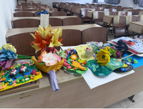 图为语文卓越教师班选拔面试、打分、手工艺品展示