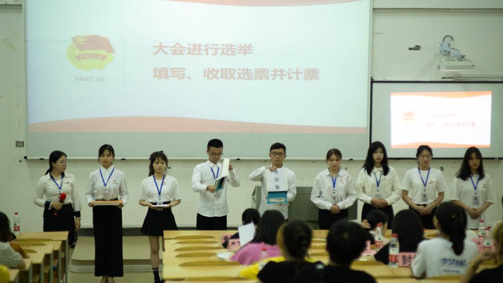 伴随着激昂的中国共青团团歌合唱声,大会拉开了序幕。此次公推直选大会的两位候选人分别是:来自2018级汉语言师范卓越班的蒋沛耘、来自2018级汉语言师范5班的罗能瑾。两位候选人依次上台发表竞职演讲、并进行了现场答辩。 现场师生们对参与本次大会的两位竞选人进行了公平、公正、公开的投票选举。最后,77779193永利集团团总支书记李香贞老师现场宣布2018级汉语言文学(师范)5班罗能瑾同学以55票当选为文学与与创意传播学院兼职团总支副书记。