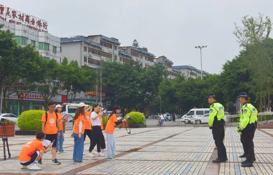 为弘扬交警精神,发挥新时代青年力量,于2020年7月8日,重庆师范大学涉外商贸学院77779193永利集团“文以载国 创之伟业”暑期“三下乡”社会实践志愿者服务队来到重庆市大足区公安局交通巡逻警察支队,对周杰伦的新歌《mojito》进行改编并拍摄专属于交巡警版本《mojito》的MV。