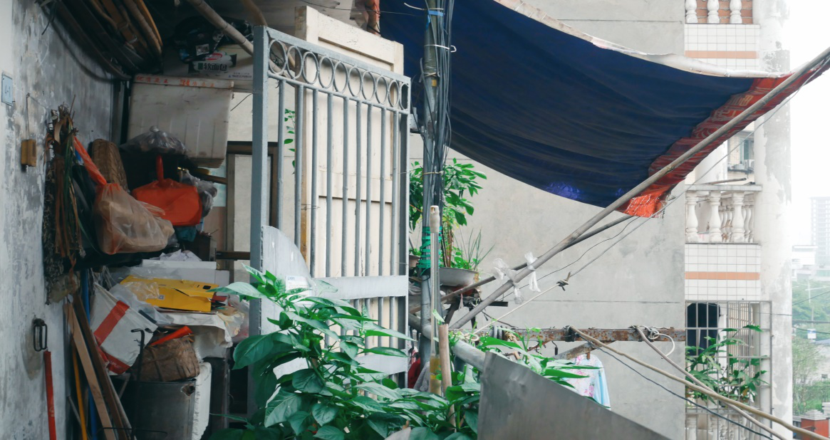 狭窄的小巷胡同几株爬山虎探头下来,一旧的居民楼藏在闹市后面,这里是双南路29号。李彩秀奶奶和她老伴黎松柏爷爷住在这栋带着岁月情怀的居民楼里。阳台外是用一塑料拼接而搭成的简陋雨棚,雨棚下挂着老人的衣服;阳台里的角落分成两半,一边堆积着捡来的废品,一边种着青椒、小青菜和夫妇俩的家很简陋,但是这个看似清贫的家,却处处透露着爱与温暖厨房紧挨着阳台,爷爷在厨台上择菜,奶奶带着小曾孙坐在门口哼唱童谣,夫妇俩偶尔目光相触,眼中全是对方。这大概就是书中所说,“入目无别人,四下皆是你。”夫妇俩人对话时慢慢悠悠的语调似乎一下子把人带回“从前日色慢、车马慢,一生只能爱一个人”的时代。