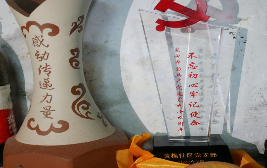 他们之间不单单只是爱,还有守望。在房间角落的柜子上有两座奖杯,一座上面印着“不忘初心,牢记使命”,一座上面印着“感动传递力量”,这是夫妇俩28年来默默守望的“证书”。1992年,李彩秀奶奶一次机缘巧合之下每月开始免费为刚刚新建的老碗厂敬老院的老人理发。在第五年的时候,黎松柏爷爷因为心疼老伴,开始学习研究理发技术,每月陪着李奶奶一起去为老人理发,而这一陪就是28年。谈及初衷,他说:“她想去守望这个世界,我心疼她,所以我想去守望着她。”从不惑之年到到古稀岁月,他一直守望着她。这匆匆几十年改变了很多东西,老碗厂敬老院改名为夕阳红敬老院,小镇也从落后的地区变为“科技林立扎篱笆的经开区,但是夫妇俩“守望”的初心却一直未变。这个世界川流熙攘,他们藏身于时间角落,用自己的方式守望着彼此,守望着世界。