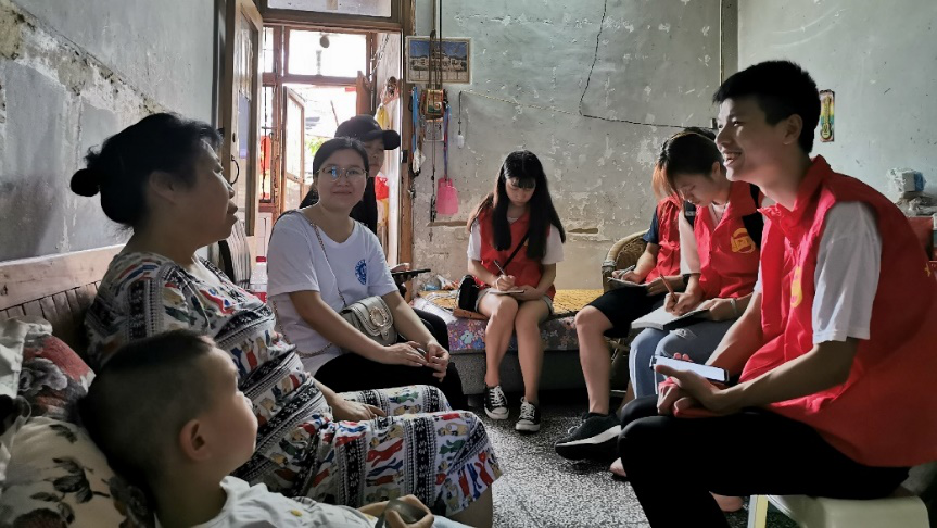 图为李彩秀与志愿者们谈心 中国青年网通讯员 刘星林