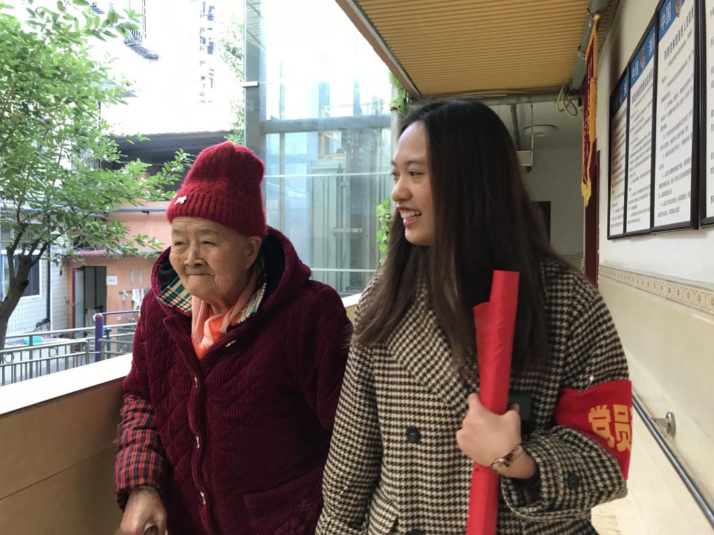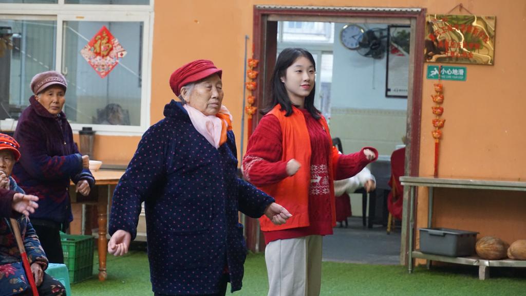 志愿者们到达康乐老年公寓后代表们代表学院党总支为老人们送上水果等慰问品,表达对老人们诚挚的关心和祝愿。活动伊始,16位发展对象同学分别与老人们展开了交流,认真倾听老人们的心声,详细了解了老人们的身体健康状况和生活情况,并对老年人进行防疫宣传、讲解疫情防护知识,叮嘱老人们勤洗手、勤通风,做好科学防护。交流结束后,在志工部组织牵头下,大家主动帮忙打扫公寓卫生,走廊、大院焕然一新。最后,同学们加入老人们的四点半做操,用实际行动感受老人们的日常活动,在午后的阳光和广播的音乐声里,大家一起度过了温情的下午时光,院子里一阵阵欢声笑语。