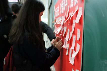 同学们观看由马列部在活动前期制作的相关采访视频,并采访了现场的同学,让同学们来发表感想。同学们皆感叹:勿忘国耻,珍惜和平。我们没有资格替先辈们原谅日本人,我们能做的就是把这段真实的历史记录下来讲给后人。在最后,同学们纷纷写下自己的感想,并粘贴到纪念板上。