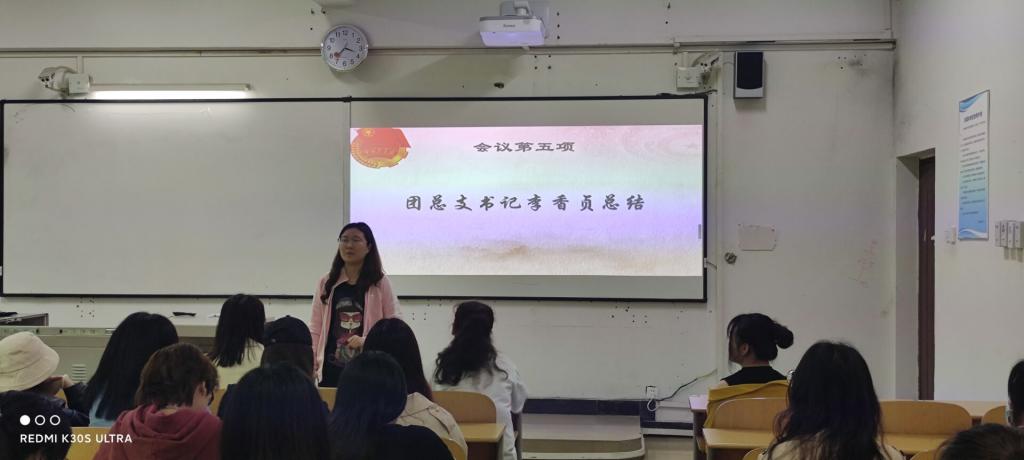 会议伊始,全体起立奏唱团歌;随后由主持人胡榆金同学带领大家共同探讨团学工作:团支部建设、推优入党、拓宽我校共青团工作的交流平台。胡榆金同学提醒各支部团组织生活材料上交的时间及注意事项并提出活动可结合当下时事政治,采取多种形式,例如跨学院、年级、专业、班级开展团组织生活,以此来丰富和创新团组织生活,提高支部成员的积极性。