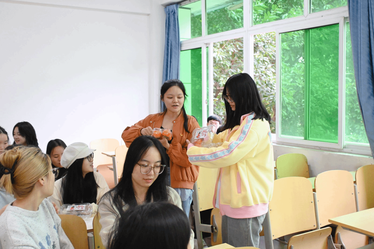 活动伊始,团支部书记徐杨组织全体支部成员起立,齐唱中国共青团团歌《光荣啊,中国共青团》,全体支部成员歌声洪亮,充分展现了共青团员的蓬勃朝气;随后团支部书记徐杨向支部成员们介绍了此次“霜降至,秋意浓,青春奋进正当时”主题团组织生活开展的背景以及霜降出游赏景、登高远眺、观赏菊花、吃柿子等习俗。团支部书记徐杨和宣传委员覃钰一起为部成员们分发了菊花茶和西安火柿,寓意大家在学习生活中“柿柿”如意。