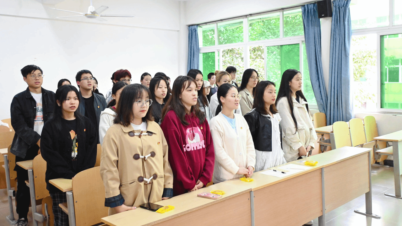(图为支部成员齐唱共青团团歌)