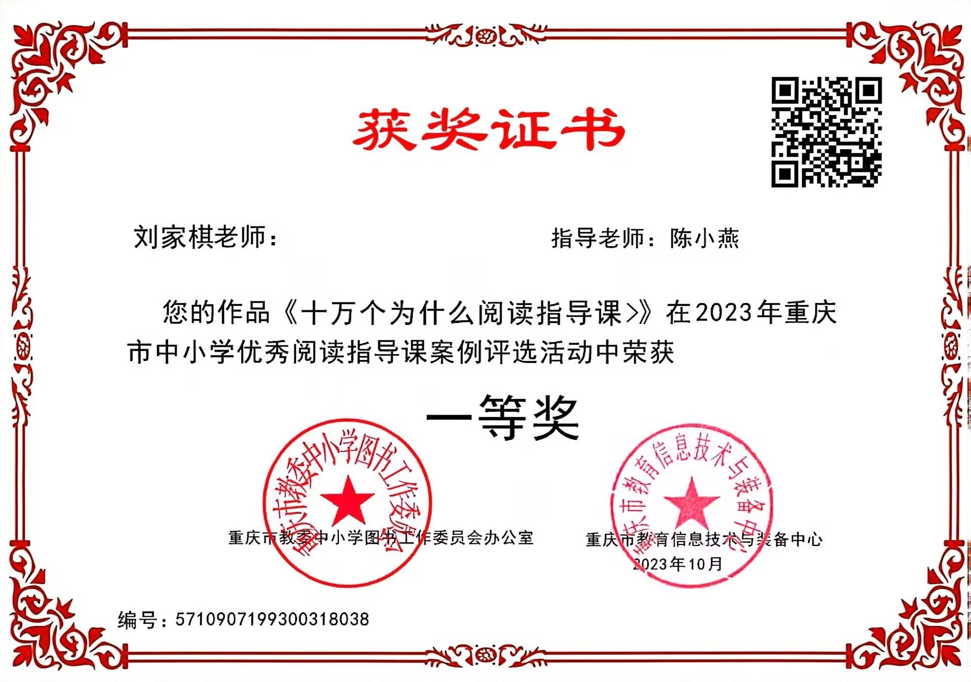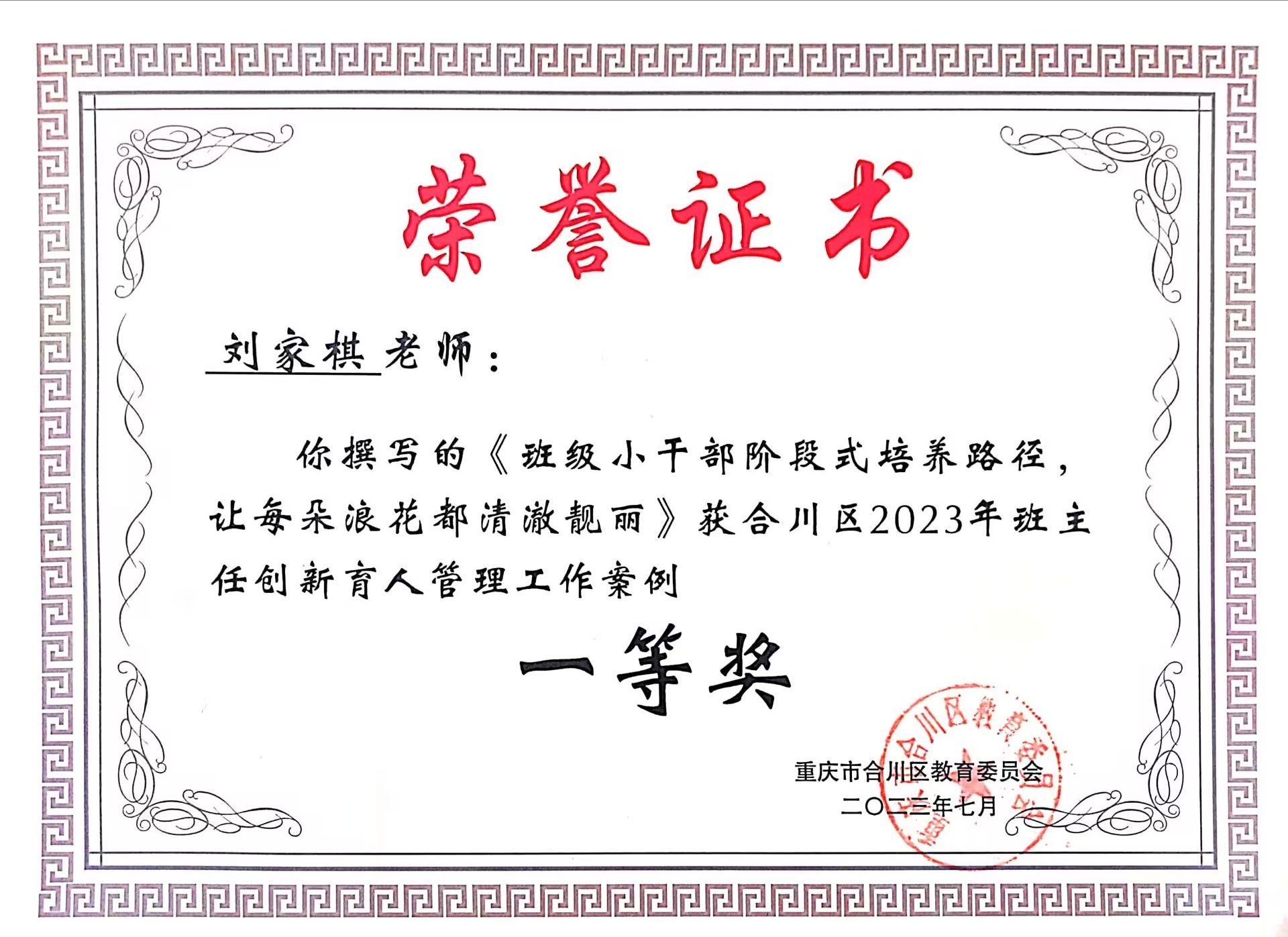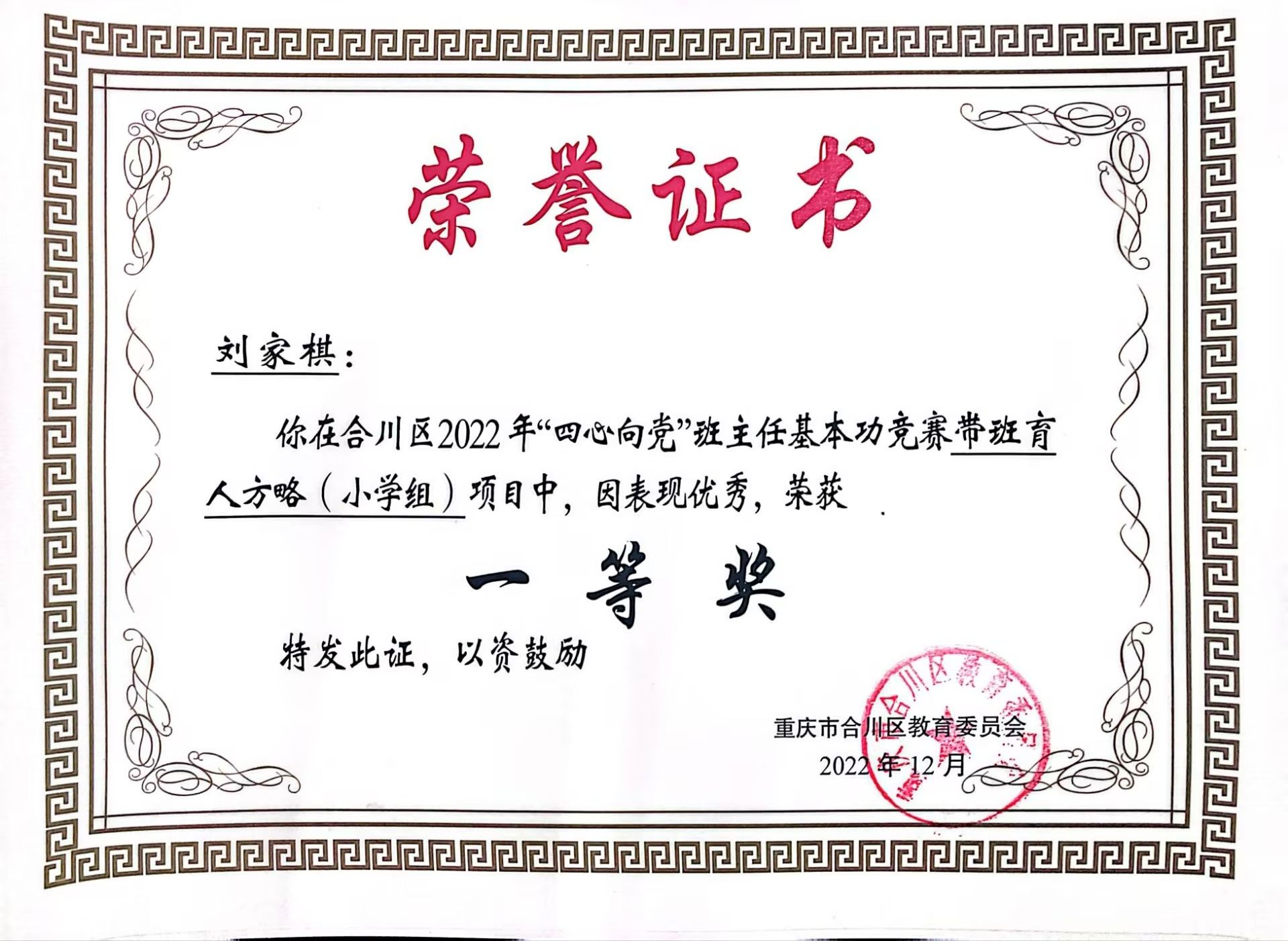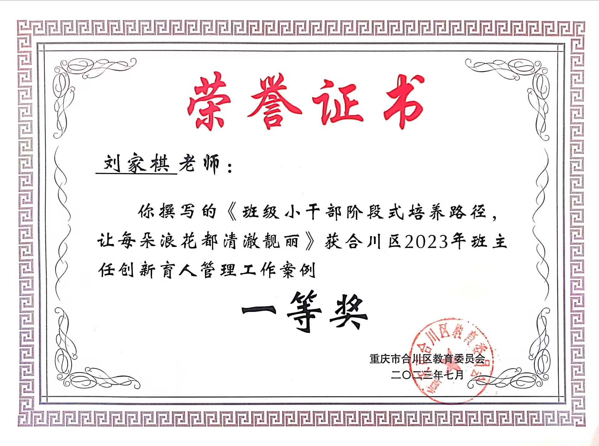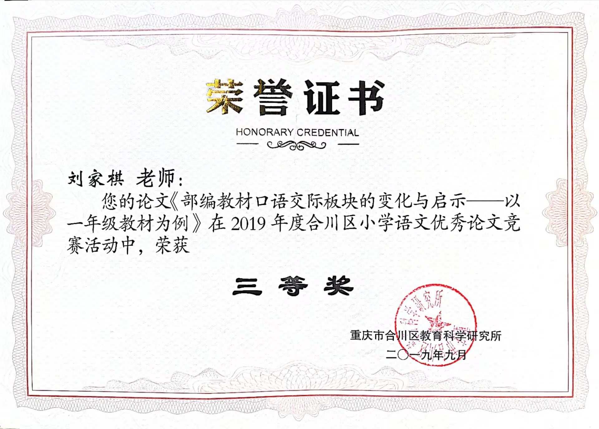 刘家棋,2015级卓越班学生,2019年毕业就职于重庆市合川区南滨路小学语文教师、班主任、一年级教研组组长。